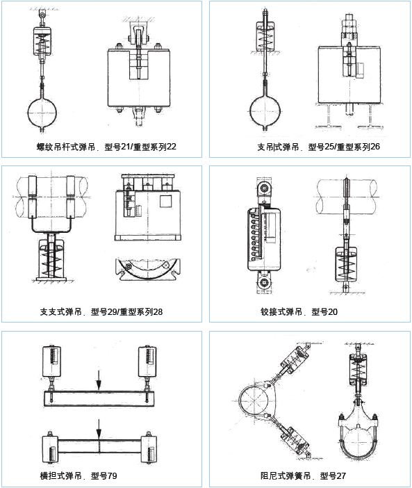 根据支撑形式的不同,弹簧吊架可以分成以下几个类别:
